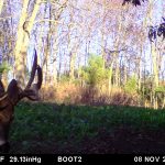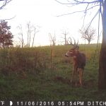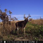 A nice mature buck using the “crossover” food plot. Notice it’s during day light!