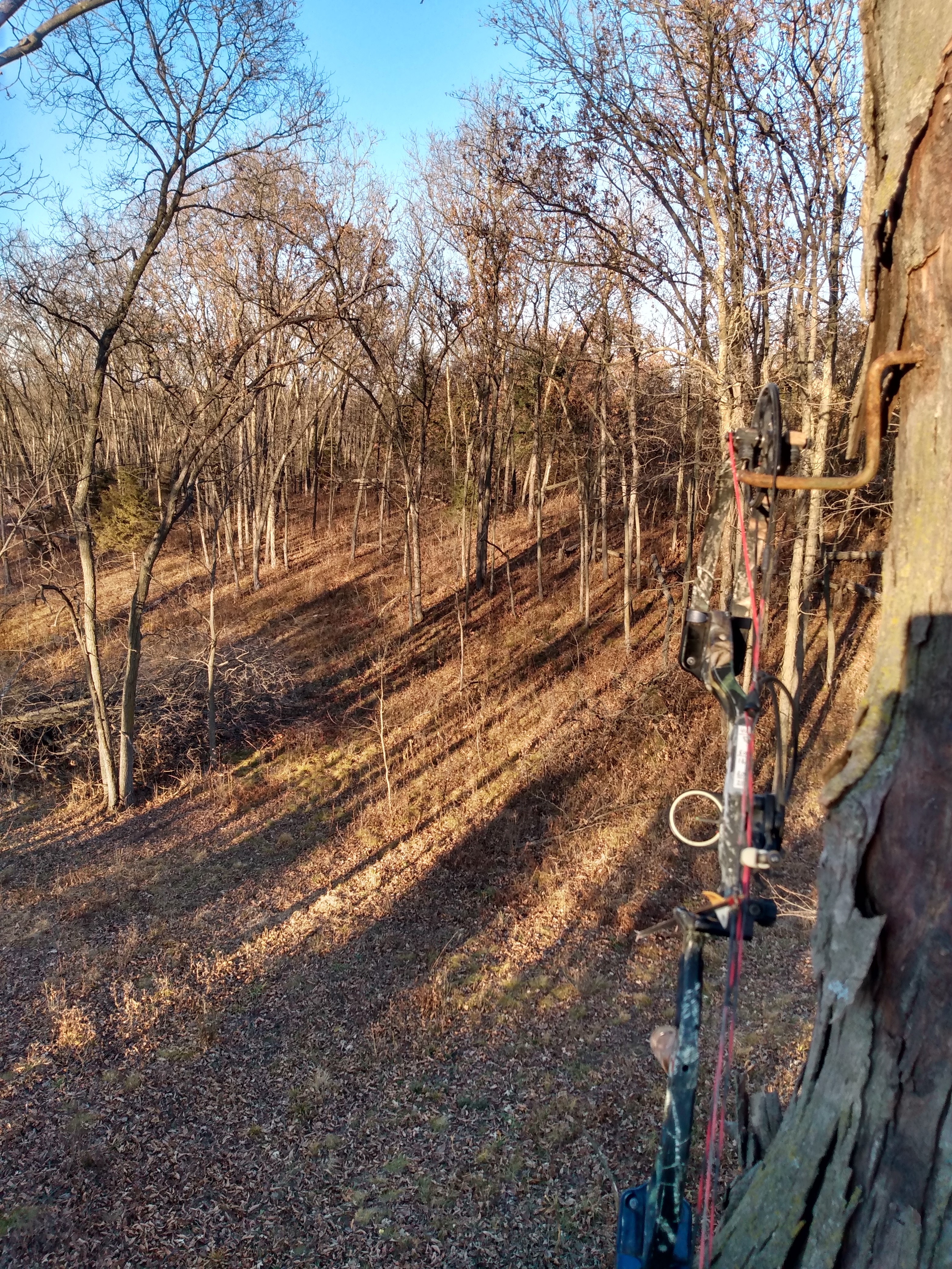 Last archery sit 2021. This is the ditch crossing that I created this past winter. Worked perfectly tonight on a young buck. Can you see how open the timber is? I need to do some chainsaw work in this portion of the farm.