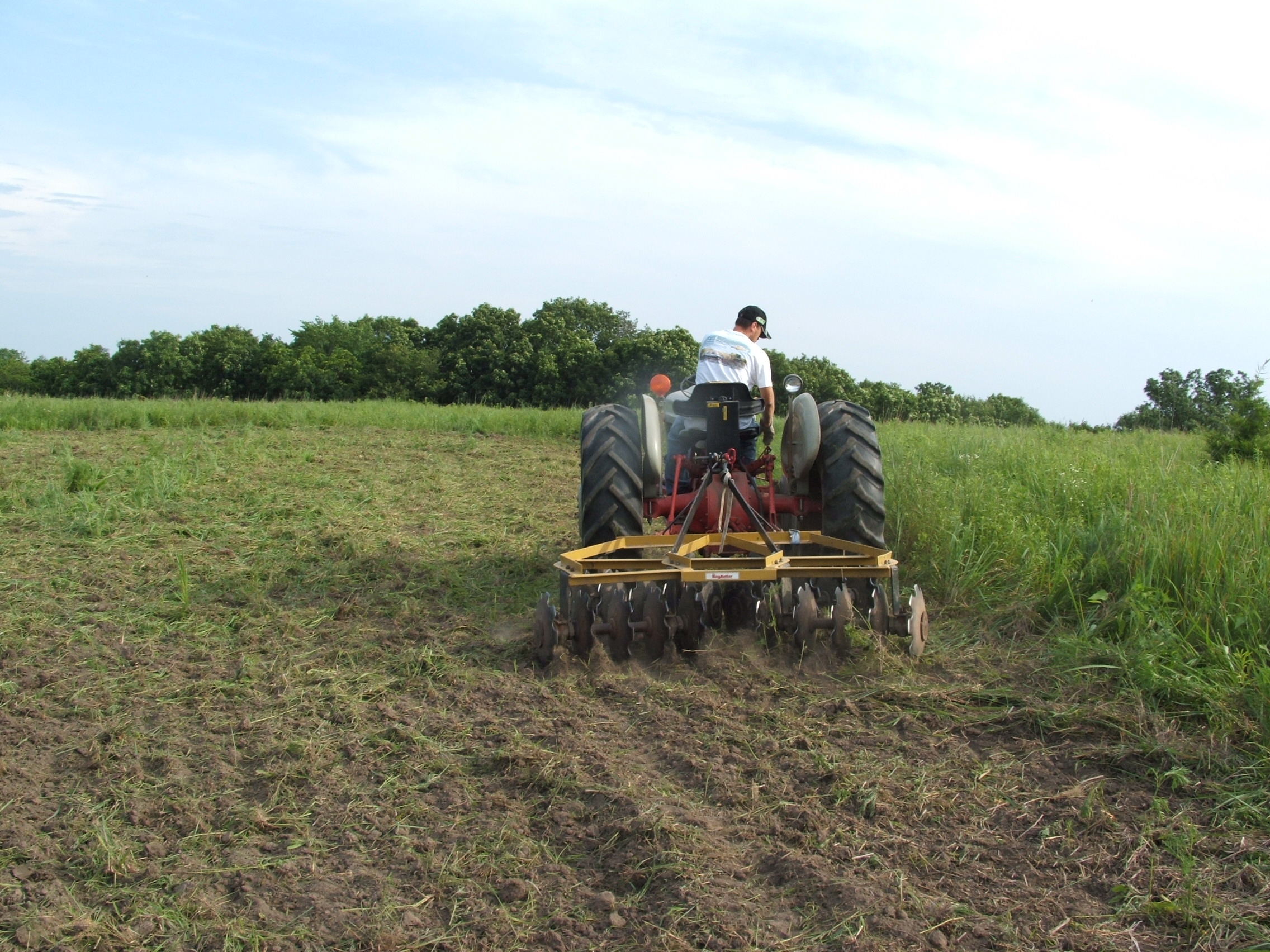 For a late fall/winter brassica plot, sow the seeds around mid July. The first step is busting up the ground to expose the soil. Here my good friend Anthony is making several passes with a disc. Ideally, this plot would have been sprayed before hand…but I think we’ll be fine.