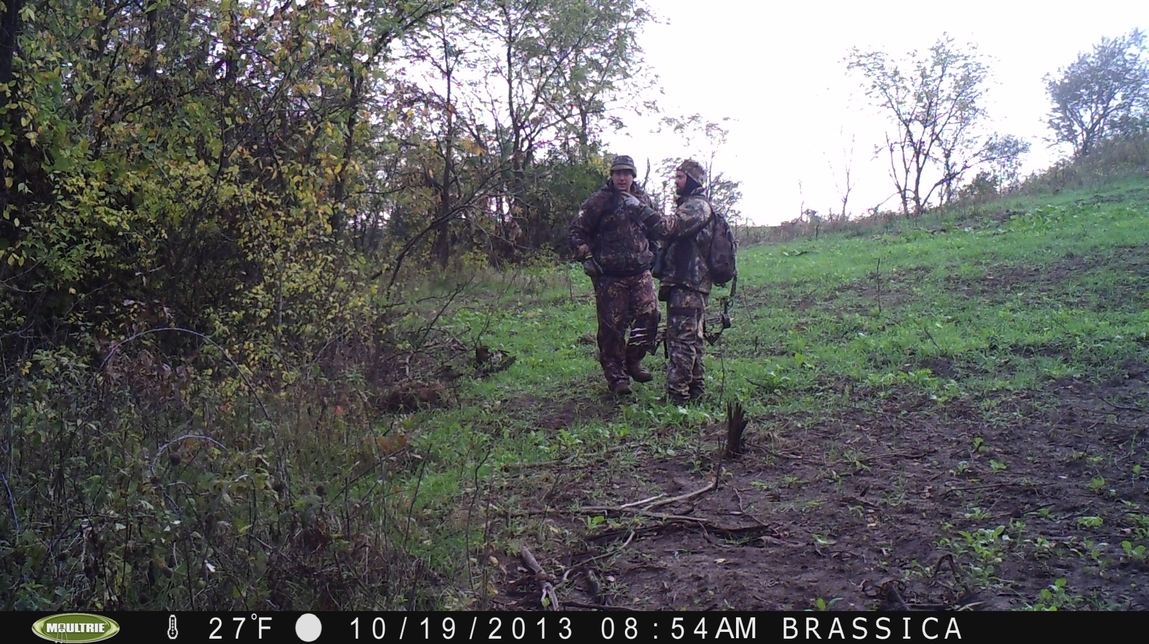 One of my trail cameras caught Ryan and I doing some spot scouting after a morning hunt.
